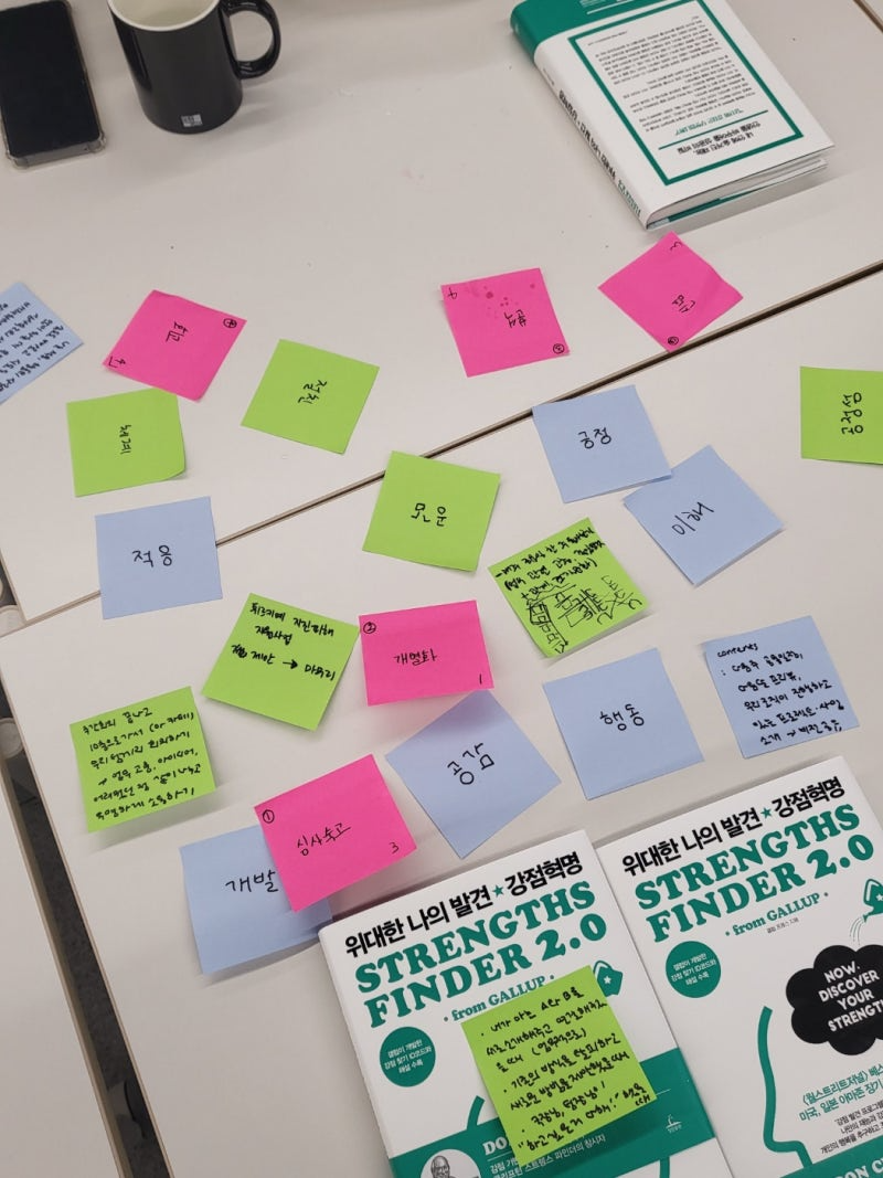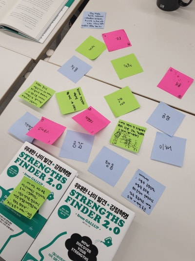이렇게 각자가 가진 '강점' 키워드를 모아 포스트잇에 적어보고,