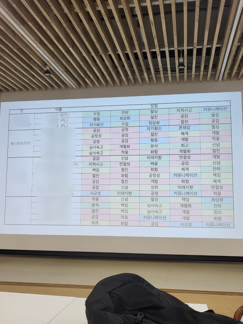함께 공유하며 서로 어렴풋이 눈치채고(?) 있던 서로의 강점에 대해 확실히 알아보는 시간이었는데요.