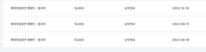 ▲ Soo 인턴의 필리핀 해외마을결연 캠페인 참여 내역
