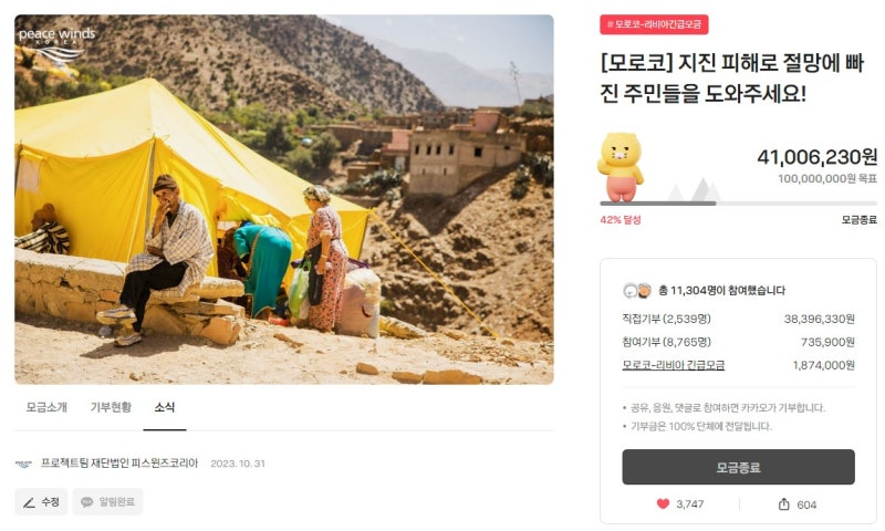 그렇게 모인 돈은 모두 피스윈즈코리아에 기부될 예정입니다.