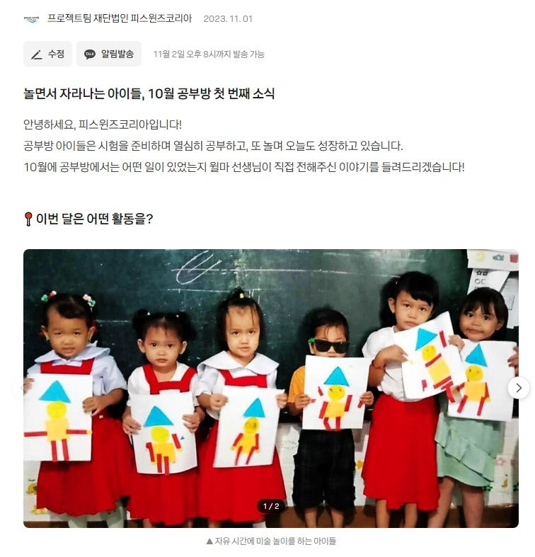 인스타그램과 블로그에 필리핀 바공실랑안 어린이 공부방의 10월 두 번째 소식을 전달했습니다!